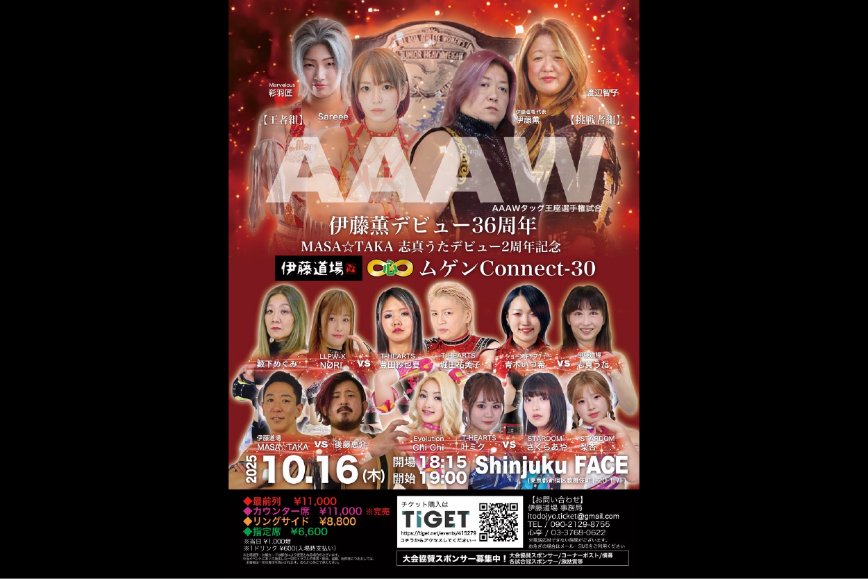 SCHEDULE 2024 01 02 03 04 05 06 07 08 09 10 11 12 2026 2025.10 2025. 11 November 2025. 09 September October 16Thu 伊藤道場 伊藤薫デビュー36周年 & MASA☆TAKA・志真うたデビュー2周年記念 『伊藤道場 ムゲンConnect-30』 OPEN/START 18:15 / 19:00 PRICE 最前列 11,000円 カウンター席 11,000円 リングサイド 8,800円 指定席 6,600円 ※当日+1,000円 LINE UP OFFICIAL SITE 伊藤道場 TICKET ■TIGET ■E-mail ■電話(090-2129-8755)にて受付 INFO お問い合わせはこちら NOTE 別途1ドリンク代600円